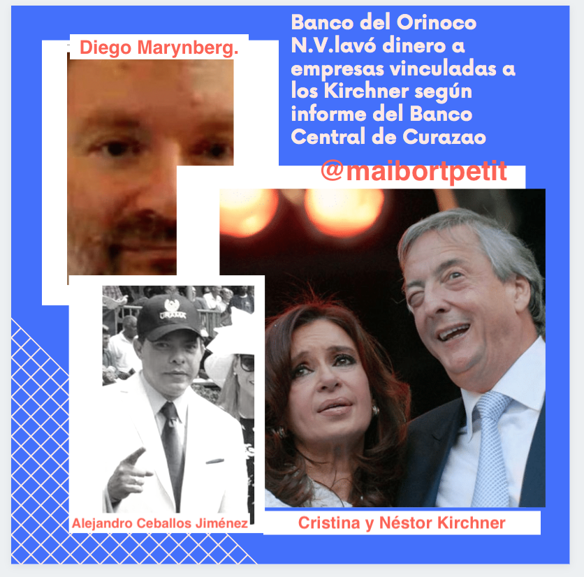 En una investigación realizada por el Banco Central de Curazao y San Martín se encontró que en el transcurso de 2018, el Banco del Orinoco N.V. — Grupo Financiero BOD- Venezuela — incurrió en una conducta comercial violatoria de las regulaciones relativas al lavado de dinero y el financiamiento del terrorismo aplicables en Curazao, estableciendo relaciones comerciales con empresas y personas que están vinculadas presuntamente con corrupción, entre los cuales se mencionan entidades sobre las que existen sospechas de estar relacionadas con el fallecido presidente argentino Néstor Kirchner, su viuda y actual vicepresidenta de Argentina, Cristina Fernández, el operador venezolano Alejandro Ceballos Jiménez y el multimillonario de origen israelí, Diego Marynberg.